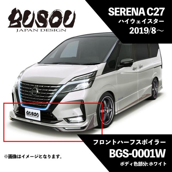 弊社倉庫在庫!即発送 BUSOU ブソウ 正規販売店 セレナ C27 2019/8〜 ハイウェイスター フロントハーフスポイラー 塗分塗装済 ボディ色部分: ホワイト BGS-0001W