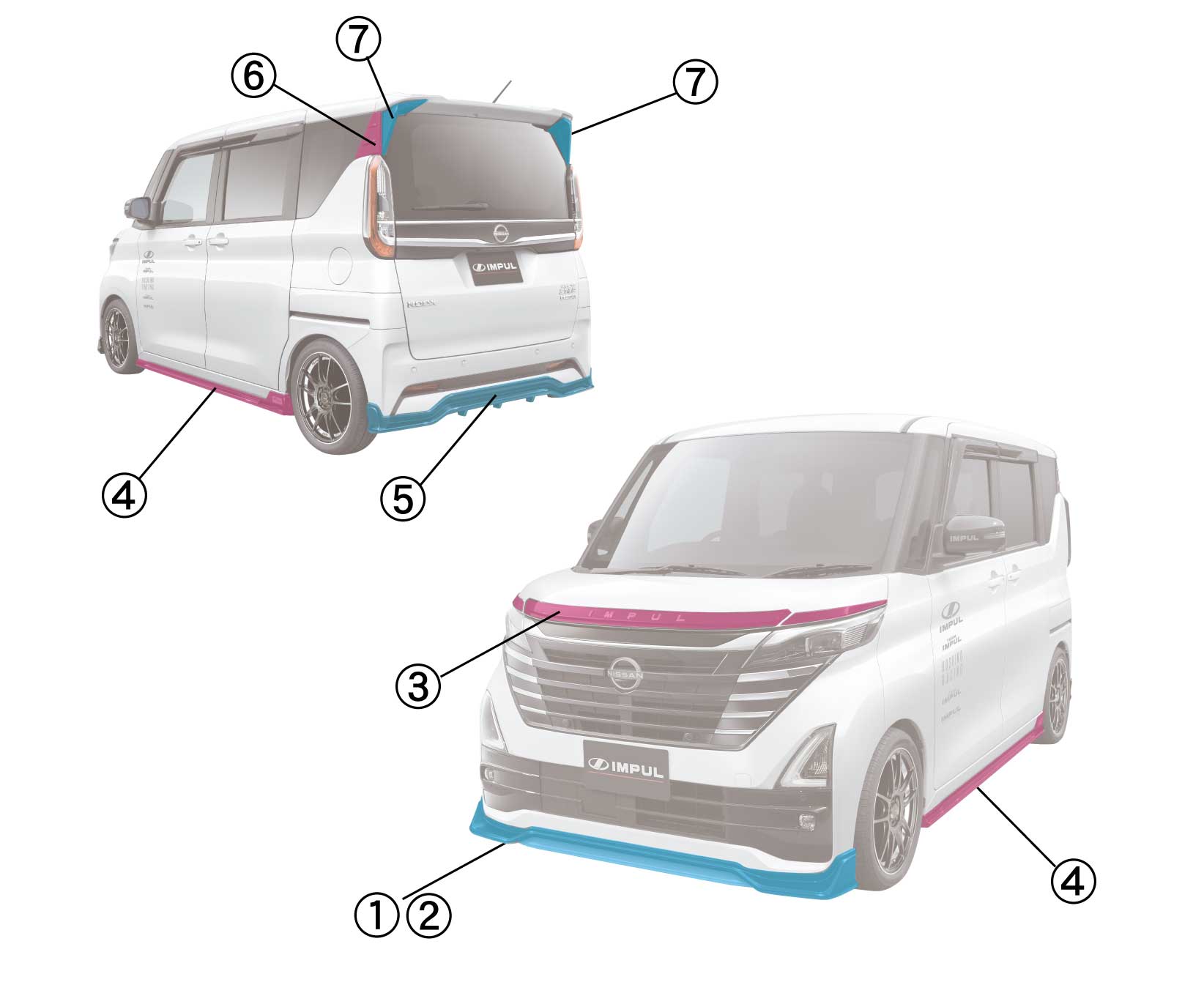 インパル ROOX ルークス 2023.8以降 MC後 ハイウェイスター用 フロントアンダースポイラー (2WD・4WD/ターボ・ノンターボ) 2色塗分塗装済品 01-431-05